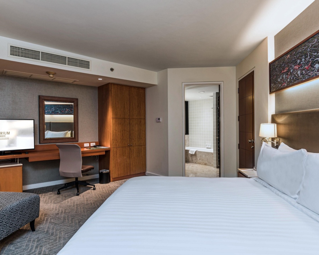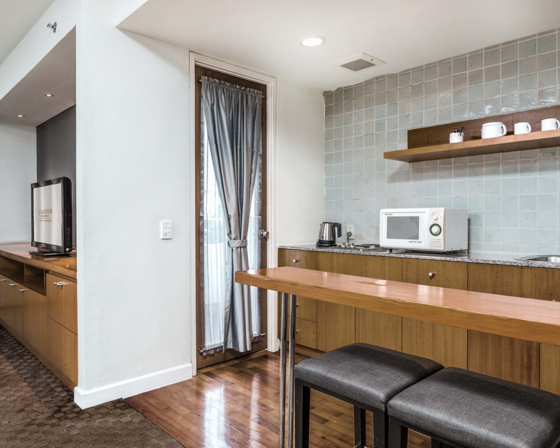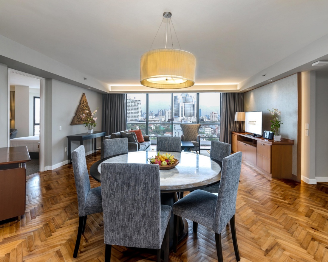 Feel completely at home in our Bangkok hotel apartment, which promises visitors every conceivable comfort and exclusive privileges for longer monthly stays. Chatrium Residence Sathon Bangkok is situated in a safe and secure setting near the vibrant Sathon business district and is in the perfect peaceful location for families seeking a residence or businesspeople working in Bangkok. The studio, as well as one, two and three-bedroom suites, feature a large living area, dining area, separate fully equipped kitchenette and balcony plus access to the services and amenities of Chatrium Sathon, including three restaurants, resort-style swimming pool, large fitness centre and 24-hour Chatrium hosts/security on standby for anything you may require.